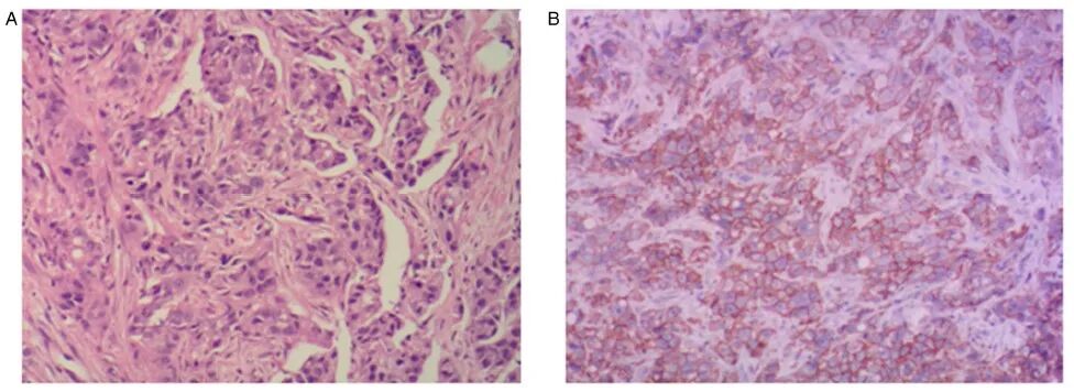 图1. 个案报道:该患者HER2阳性(+++),一线接受赫赛汀治疗后耐药