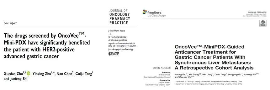 近日,南京市第一医院肿瘤内科魏晓为主任团队在权威杂志《Journal of Oncology Pharmacy Practice》1和《Frontiers in Oncology》2双双发文,从个案报告和临床研究两个层面综合报道了OncoVee®MiniPDX在指导肿瘤患者治疗上的临床获益。