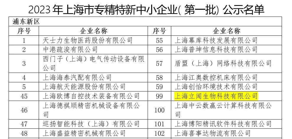 喜讯|上海立闻生物顺利通过2023年度“专精特新”中小企业认定