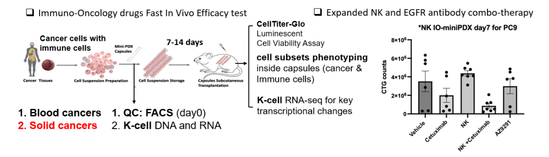 立闻生物聚焦研发创新,不断加大研发投入,为客户提供独具特色的服务。在MiniPDX的基础上进行改良,形成IO-FIVE(Immune-Oncology Fast In Vivo Efficacy test),一种针对免疫治疗及免疫联合治疗方案药敏测试,可筛选出适合个体治疗的免疫药物或联合用药方案。